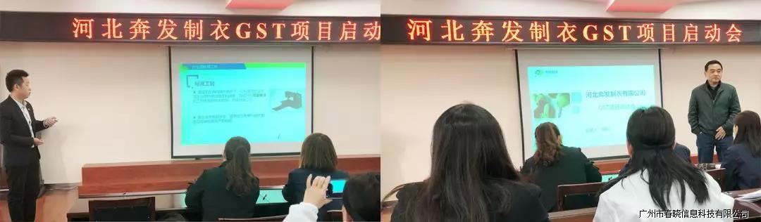 奔发制衣GST项目于2019年2月25日正式启动,在启动大会上,董事长张总描绘了奔发制衣未来伟大的蓝图计划,此刻为智能制造产业信息化迈出第一步。